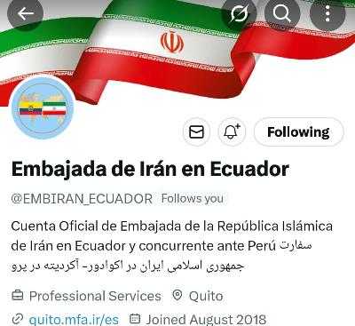 Les presentamos la cuenta Oficial de la Embajada de la República Islámica de Irán ante Ecuador en X: @EMBIRAN_ECUADOR